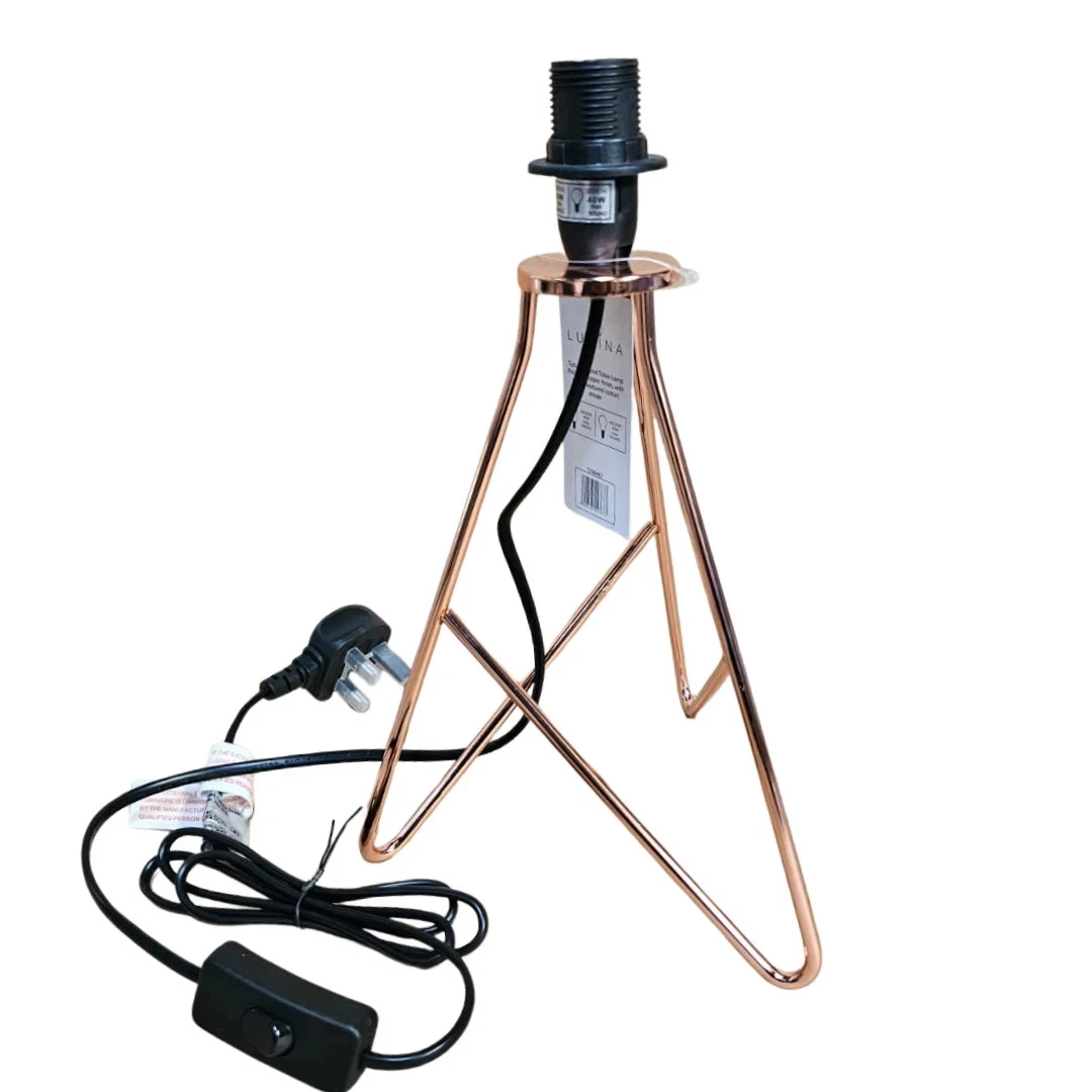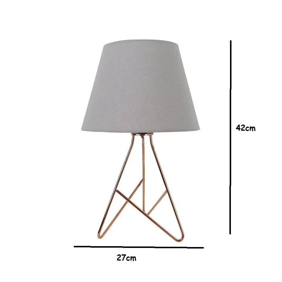 Add a contemporary touch to your home with this set of 2 modern metallic tripod table lamps, each featuring a sleek copper matt finish and contrasting grey fabric shades. A perfect blend of style and functionality, ideal for bedrooms, living rooms, hallways, studies, and conservatories.