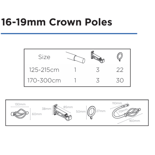 16-19mm Extendable County Crown Twist Cage Curtain Pole