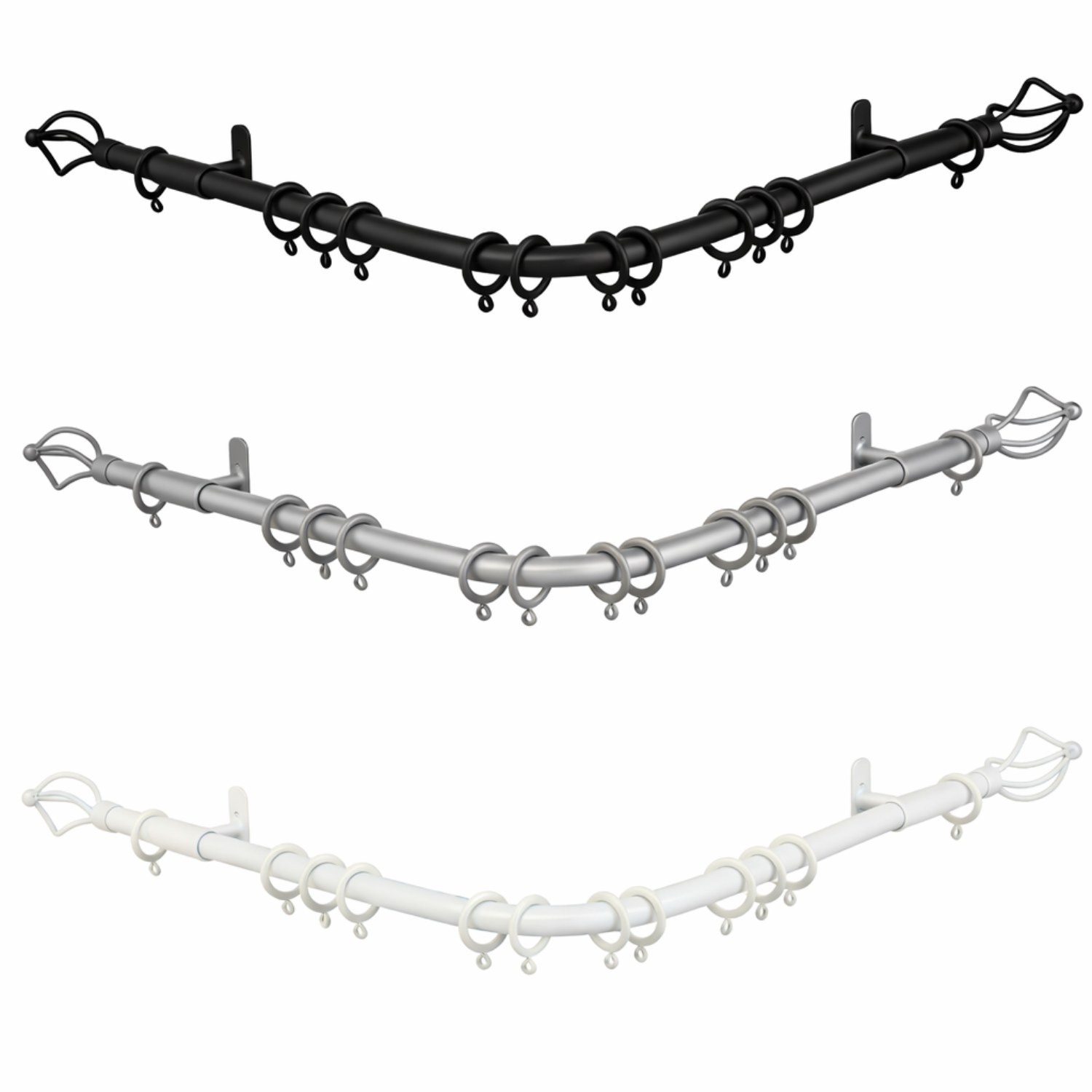 BAY POLE KIT: Complete with 5 tube support brackets (brackets cannot be passed), 44 composite plastic matching rings, 2 crown twisted cage finials.Includes: poles, Finials, Brackets, Connector and Rings