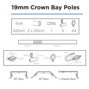 19mm County Crown 3 Sided Bay window Curtain Pole 420cm