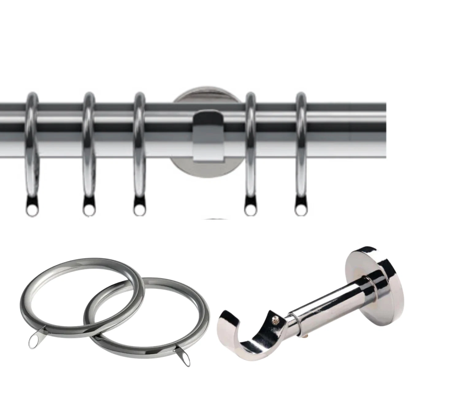 Home Home Furnishing Curtain Poles & Accessories 28mm Semi-Complete Chrome IDC Curtain Pole with Bracket & Lined Rings, No Finials