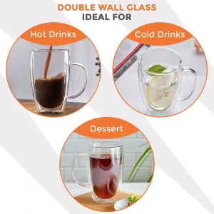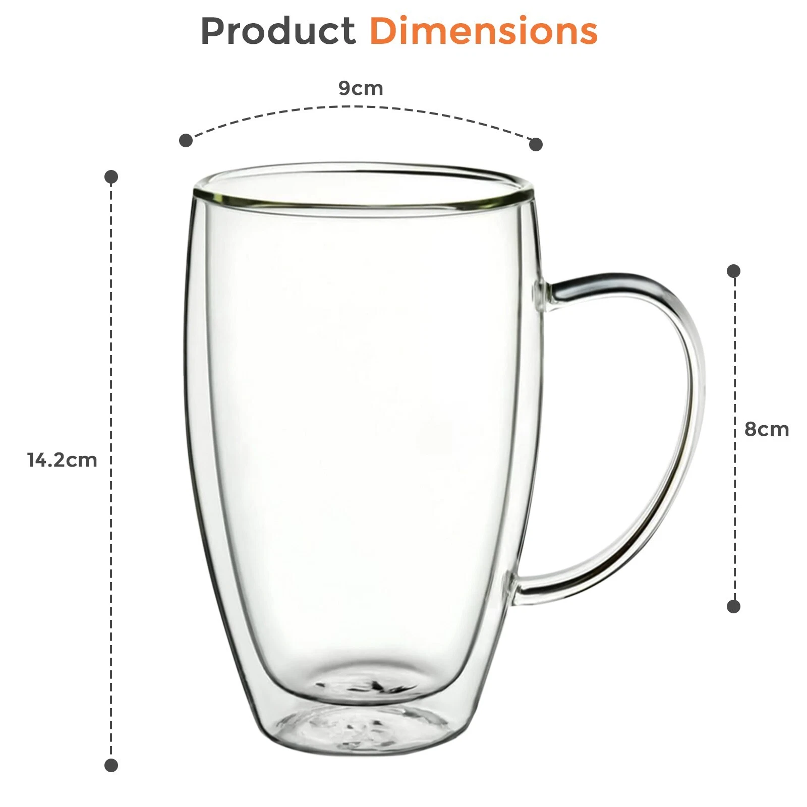 Category: Kitchenware Tag: 2x Double Wall Insulated Glass Tea Coffee Mugs with Handle 450ml