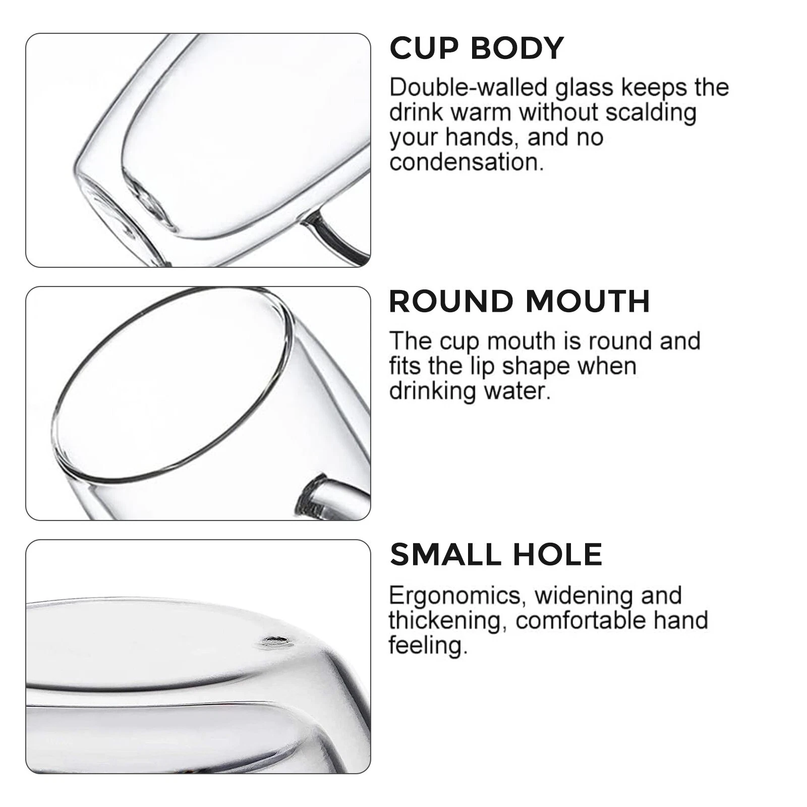 The clear double-wall design creates a floating effect, enhancing the presentation of coffee, tea, lattes, cappuccinos, espresso, smoothies, or juice. Ideal for home, office, or entertaining guests, it combines functionality with sleek, modern style.