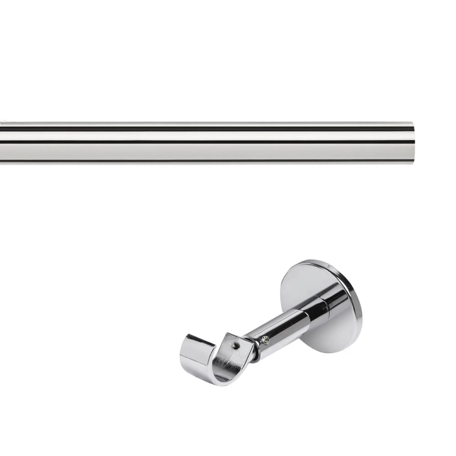 35mm Chrome Curtain Poles with Single IDC Brackets, No Finials, No Rings