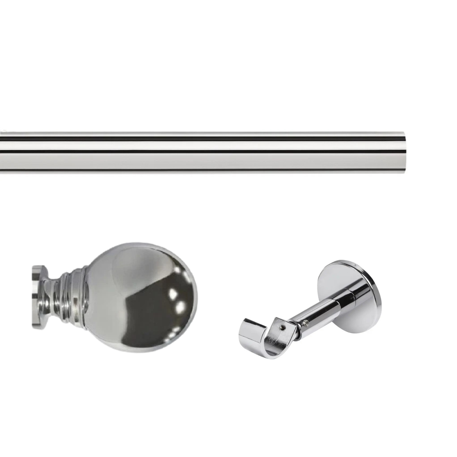 35mm Chrome Eyelet Curtain Pole Set with Ball Finials & Single IDC Brackets