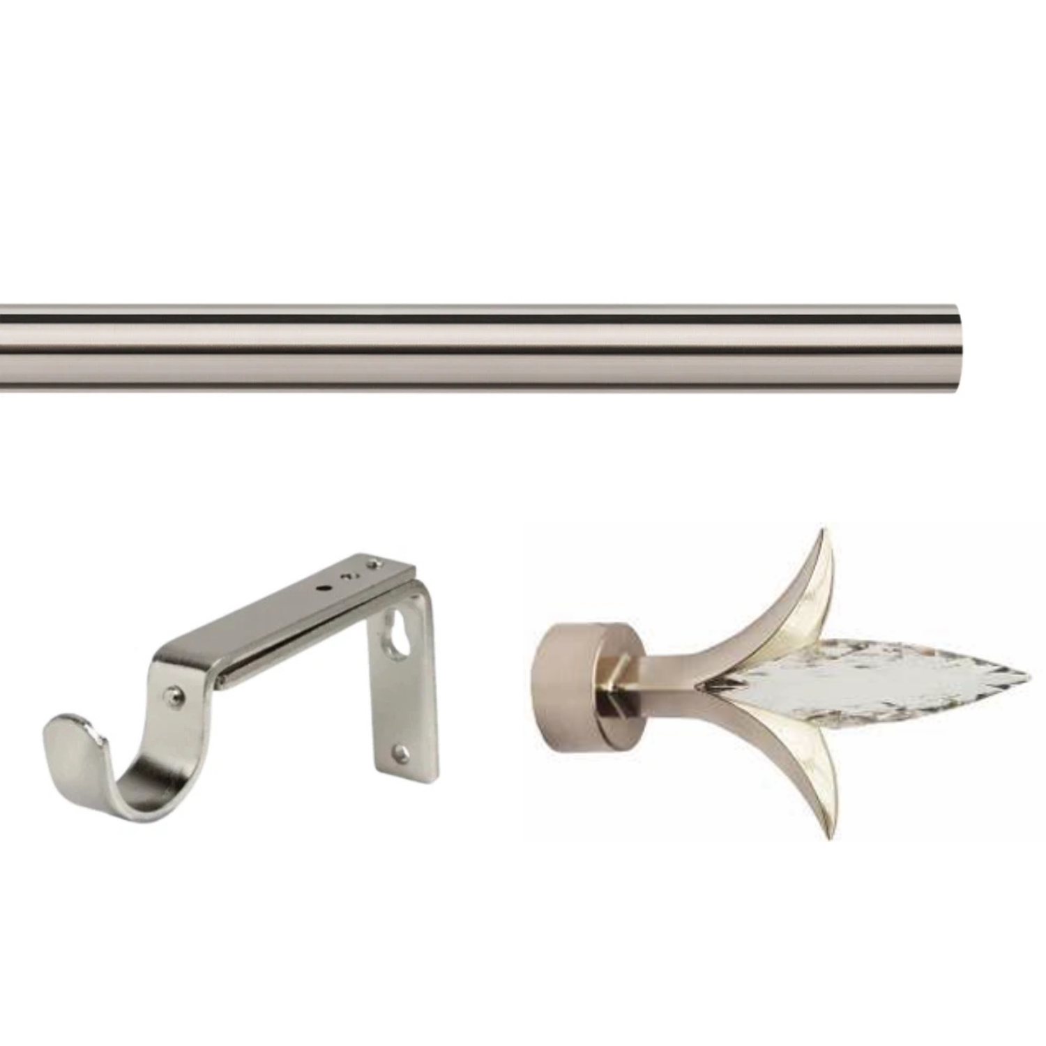 SKU: N/A Categories: Curtain Poles & Accessories, Home Furnishing Tag: 35mm Satin Silver Eyelet Curtain Pole Set with Adjustable Brackets & Fleur De Lys Finial