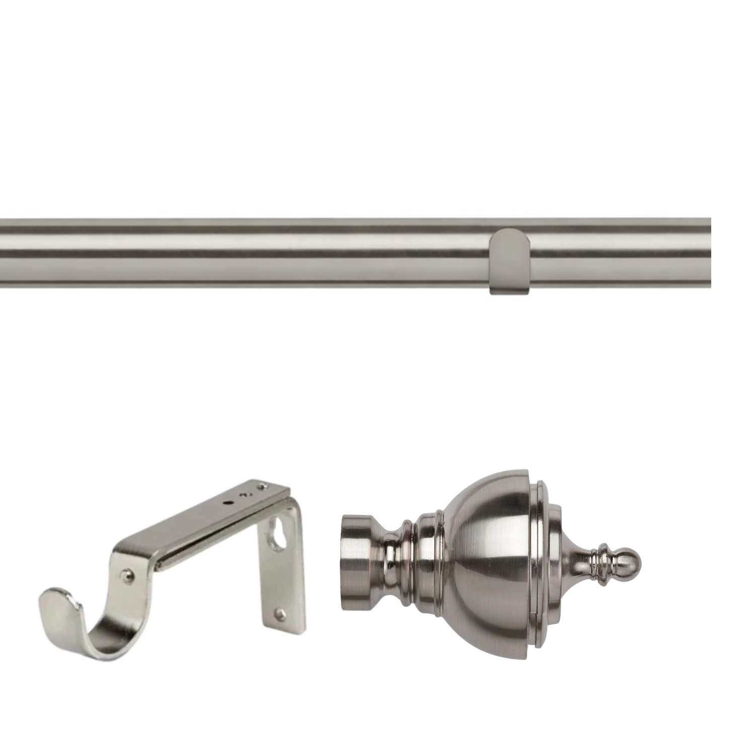 Home Home Furnishing Curtain Poles & Accessories 35mm Satin Silver Eyelet Curtain Pole Set with Adjustable Brackets, Vienna Finial