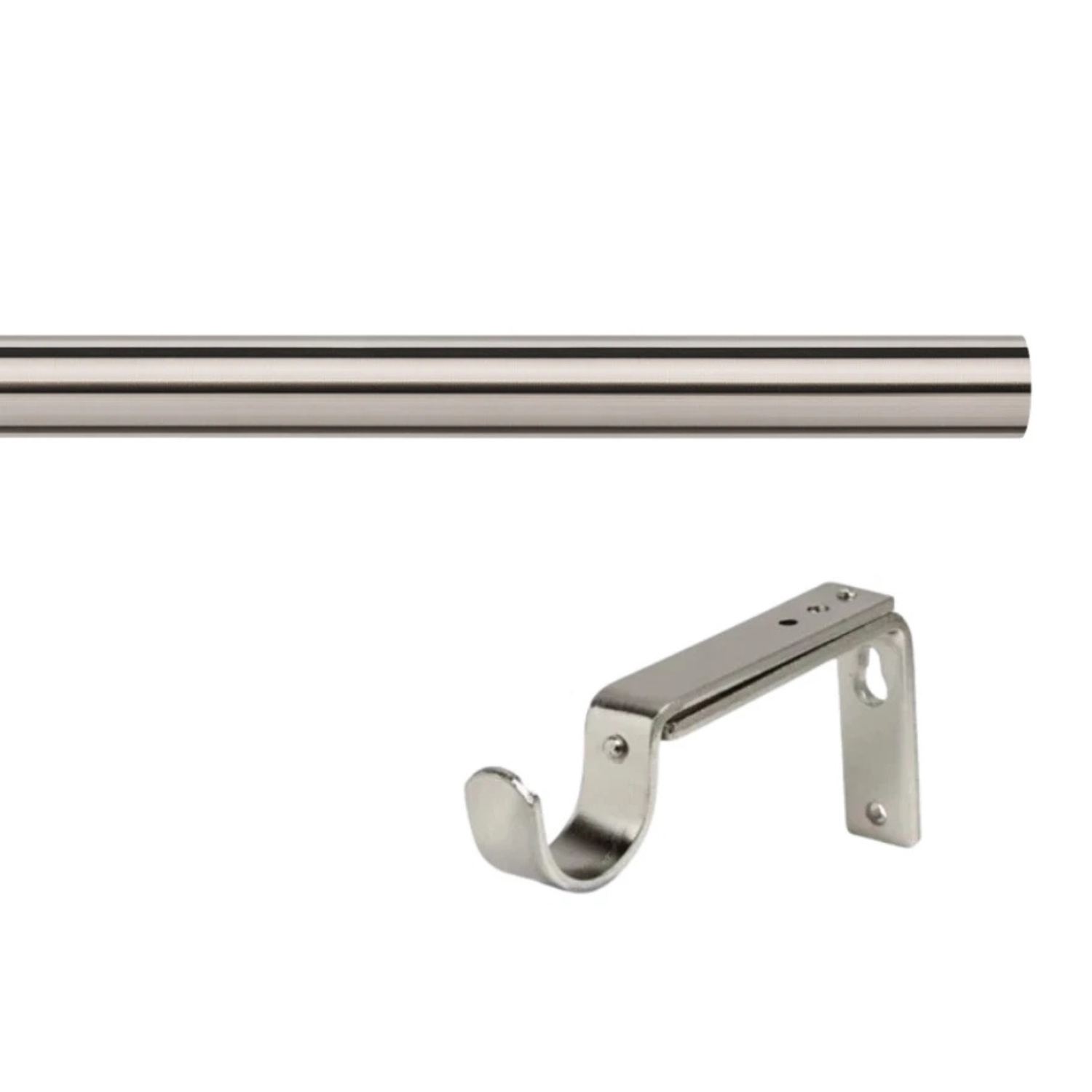 35mm Satin Silver Eyelet Curtain Pole with Long Stem Bracket