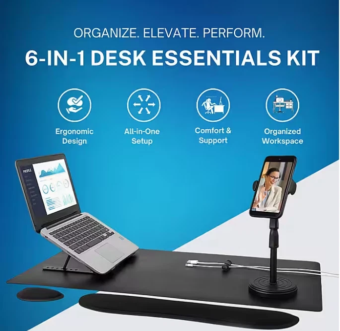 6-in-1 Black Studio Desk Set – Phone Holder, Laptop Riser & Workspace Accessories