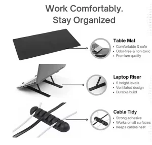 Categories: Computer Stationery, Electricals Tags: 6-in-1 Black Studio Desk Set – Phone Holder, Laptop Riser & Workspace Accessories