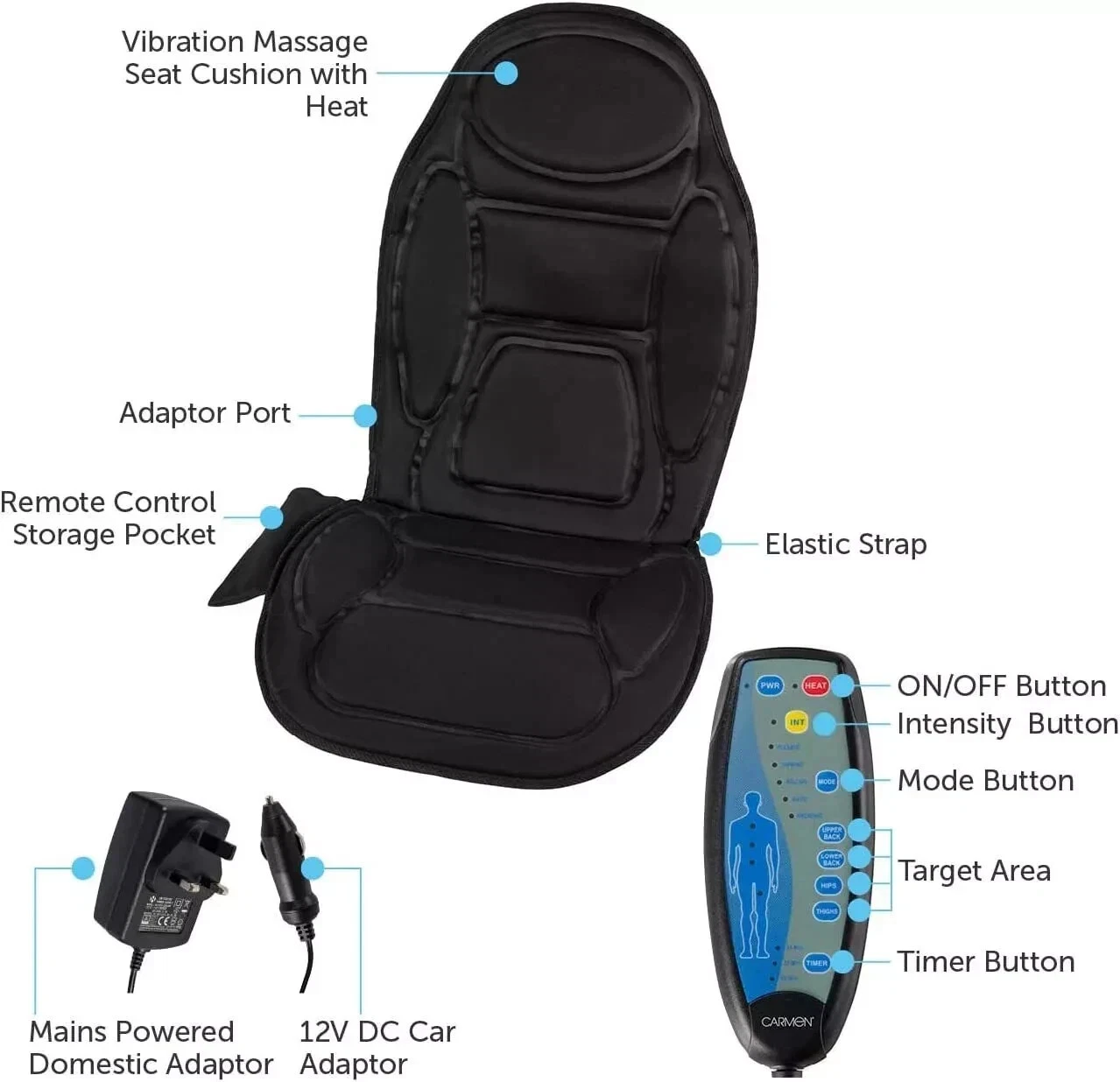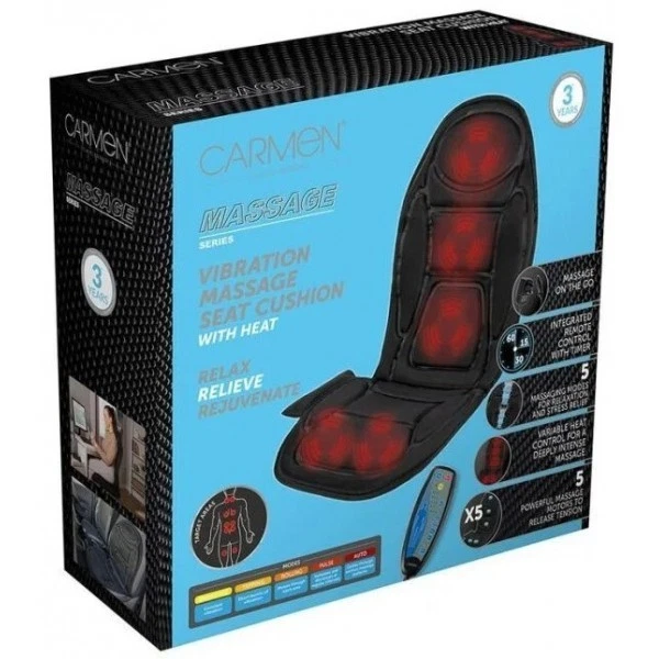 • Carmen C81133 Black 5 Massage Modes Vibration Massage Seat Cushion with Heat Carmen C81133 Black Vibration Massage Seat Cushion with Heat – 5 Massage Modes £39.99 Original price was: £39.99.£29.99Current price is: £29.99.