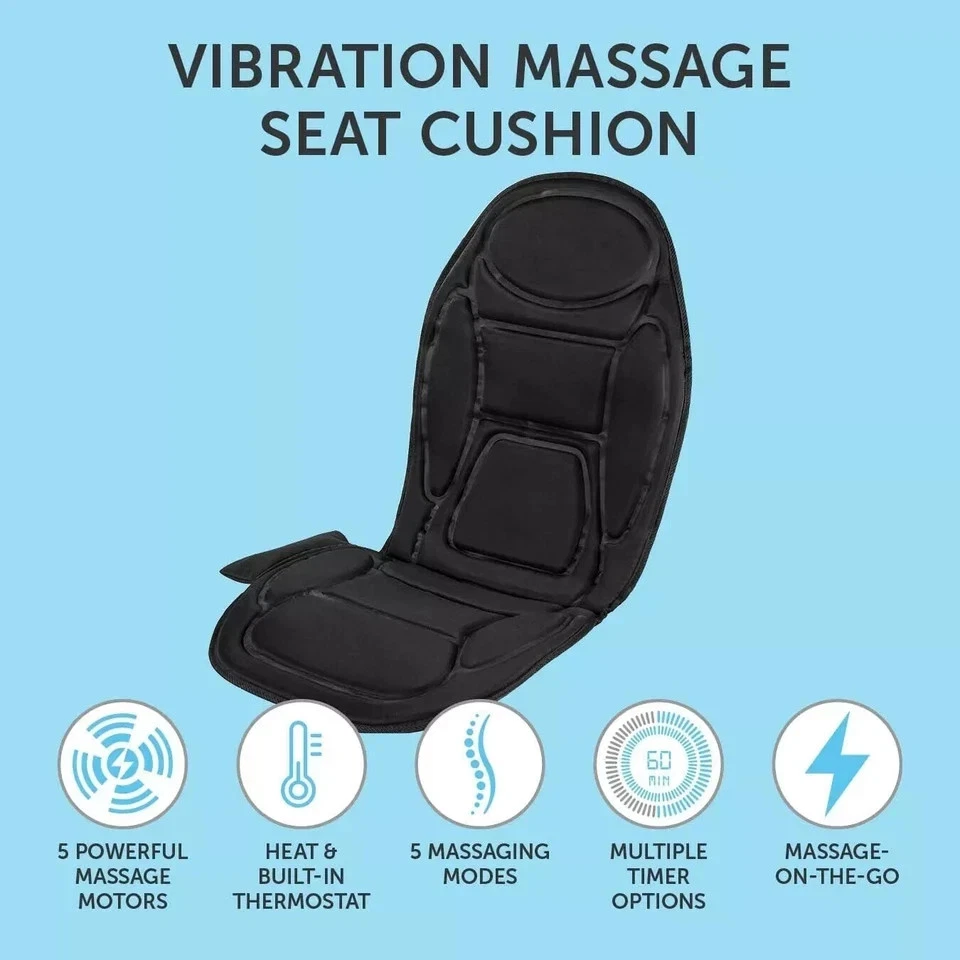 Carmen C81133 Black Vibration Massage Seat Cushion with Heat – 5 Massage Modes