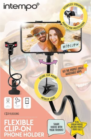 Enjoy watching videos, and video calling on your smartphone in perfect comfort with this superb Intempo Clip Phone Holder.