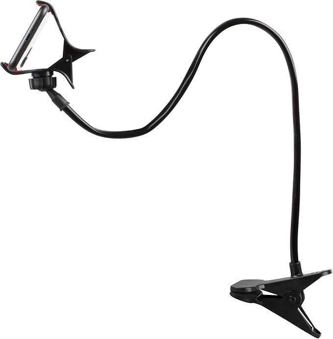Designed to keep your hands free so you can multitask and record videos or work while you watch, simply clip the holder onto a desk.
