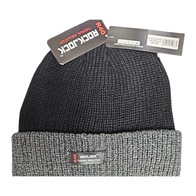 Men’s Beanie Knitted Thermal Hat Black & Grey Warm Winter Cap