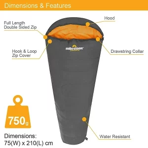 Milestone Camping Lightweight Dark Grey Mummy Sleeping Bag