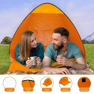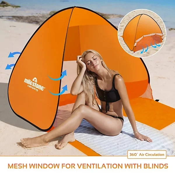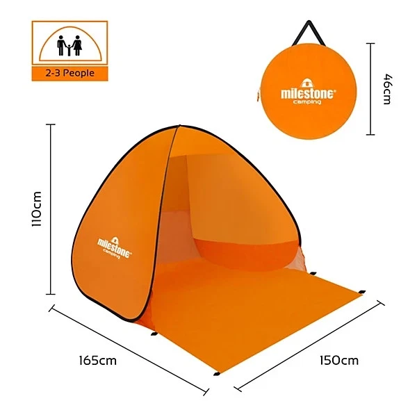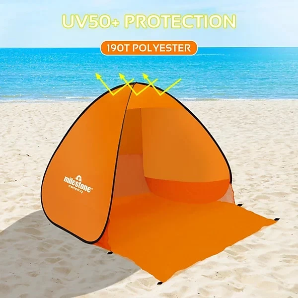 The Milestone Camping pop-up beach shelter is a lightweight, compact, and easy-to-use solution for protecting you and your family from sun, wind, and sand, whether at the beach, park, festival, garden, or as an indoor play tent for children.