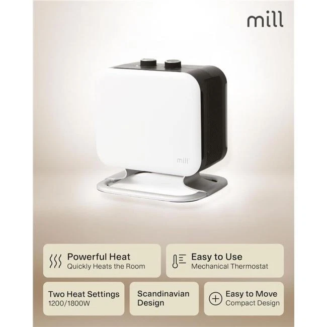 Mill Compact Portable Ceramic Fan Heater 1800W