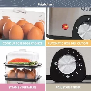 Quest 2-Tier Stainless Steel Egg Cooker – 8-Hole Egg Boiler, Poacher & Food Steamer