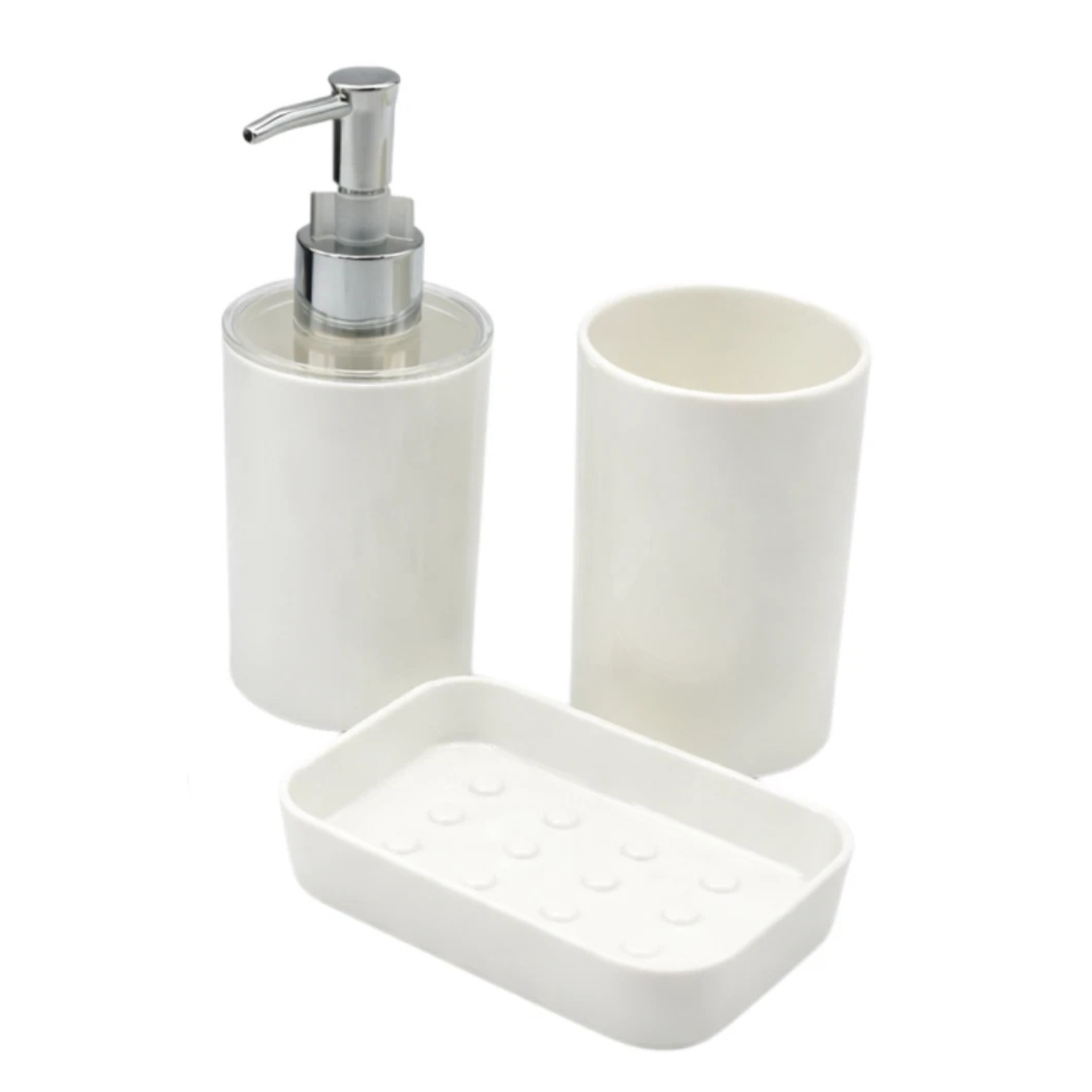 Home Household Bath Accessories Wickes 3 PCS White Bathroom Accessory Set
